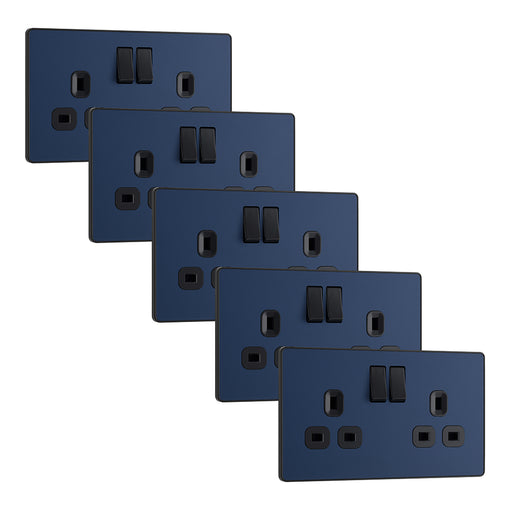 BG Evolve PCDDB22Bx5 13A Double Switched Power Socket - Matt Blue (Black) (5 Pack)