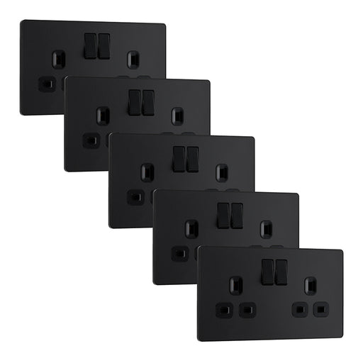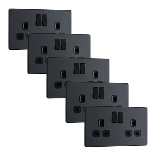 BG FFB22Bx5 Flatplate Screwless Double Socket 13A - Black Insert - Matt Black (5 Pack)