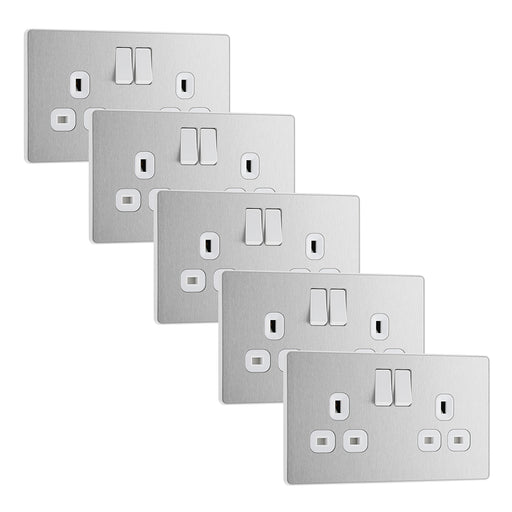 BG Evolve PCDBS22Wx5 13A Double Switched Power Socket - Brushed Steel (White) (5 Pack)