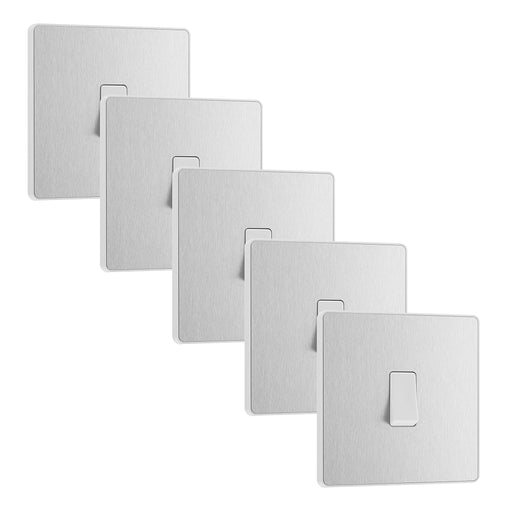 BG Evolve PCDBS12Wx5 20A 16AX 2 Way Single Light Switch - Brushed Steel (White) (5 Pack)