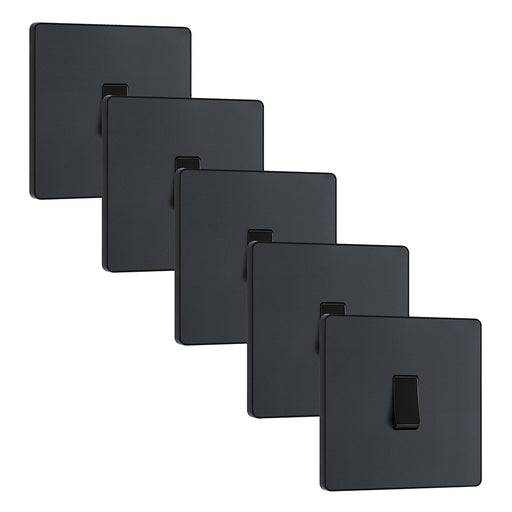 BG FFB12x5 Flatplate Screwless 20A 16AX 2 Way Single Light Switch - Matt Black (5 Pack)