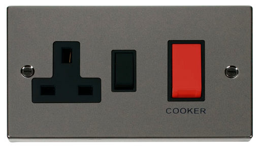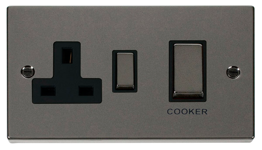 Click Deco VPBN504BK Victorian 45A Ingot 2G DP Switch + 13A DP Switched Socket - Black Nickel (Black)