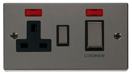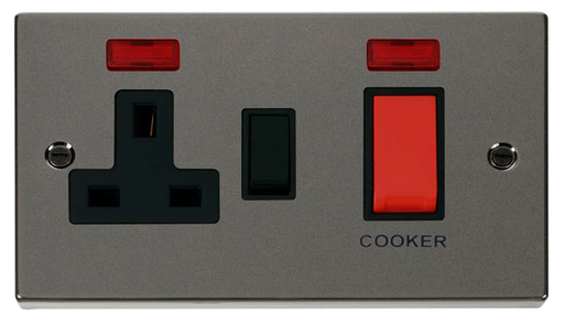 Click Deco VPBN505BK Victorian 45A Ingot 2G DP Switch + 13A DP Switched Socket + Neon - Black Nickel (Black)