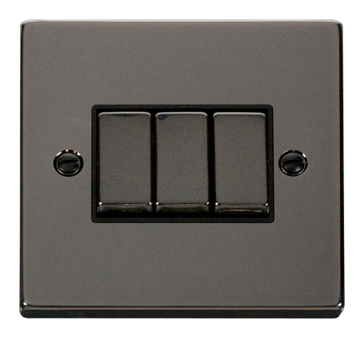 Click Deco VPBN423 Victorian 10AX 3-Gang 2-Way Toggle Plate Switch - Black Nickel