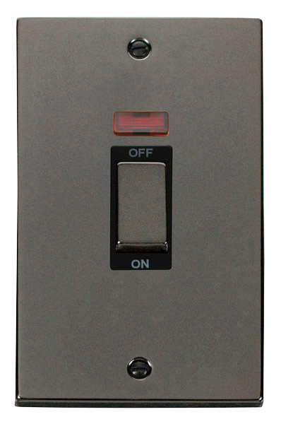Click Deco VPBN503BK Victorian 45A Ingot 2G Double Pole Switch + Neon (Vertical) - Black Nickel (Black)