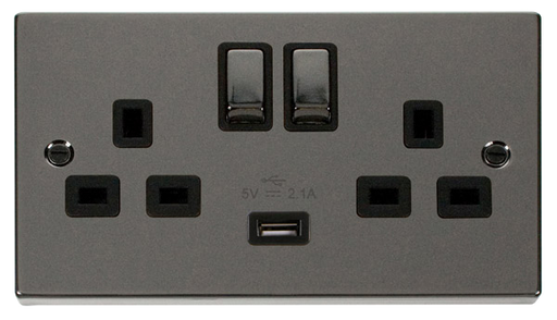 Click Deco VPBN570BK Victorian 13A Ingot 2G Switched Socket + 1x2.1A USB - Black Nickel (Black)