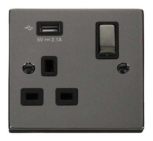 Click Deco VPBN571UBK Victorian 13A Ingot 1G Switched Socket + 1x2.1A USB - Black Nickel (Black)