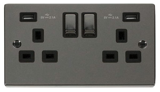 Click Deco VPBN580BK Victorian 13A Ingot 2G Switched Socket + 2x2.1A USB - Black Nickel (Black)