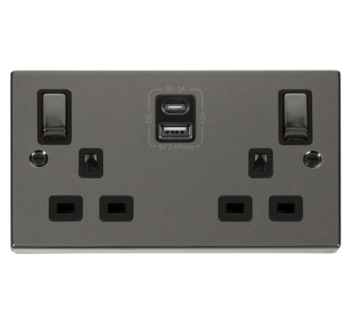 Click Deco VPBN586BK Victorian 13A Ingot 2G Switched Socket + Type A&C USB - Black Nickel (Black)