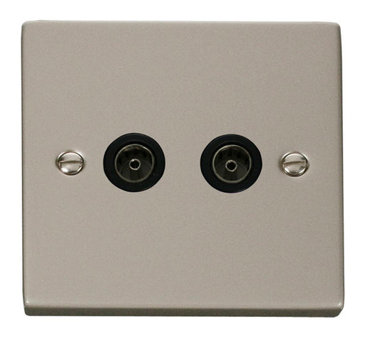 Click Deco VPPN066BK Victorian Twin Co-Axial Outlet (Non-Isolated) - Pearl Nickel (Black)
