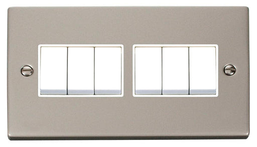 Click Deco VPPN105WH Victorian 10AX 6-Gang 2-Way Plate Switch - Pearl Nickel (White)