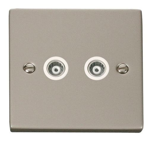 Click Deco VPPN066WH Victorian Twin Co-Axial Outlet (Non-Isolated) - Pearl Nickel (White)