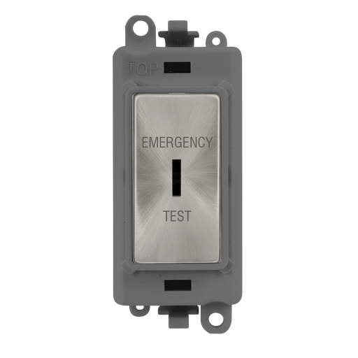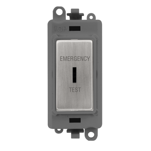 Click GridPro GM2046GYBSET 20AX Double Pole Keyswitch 'Emergency Test' Module - Brushed Stainless (Grey)