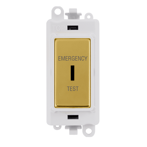 Click GridPro GM2046PWBRET 20AX Double Pole Keyswitch 'Emergency Test' Module - Polished Brass (Polar White)