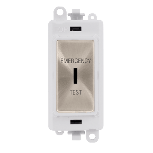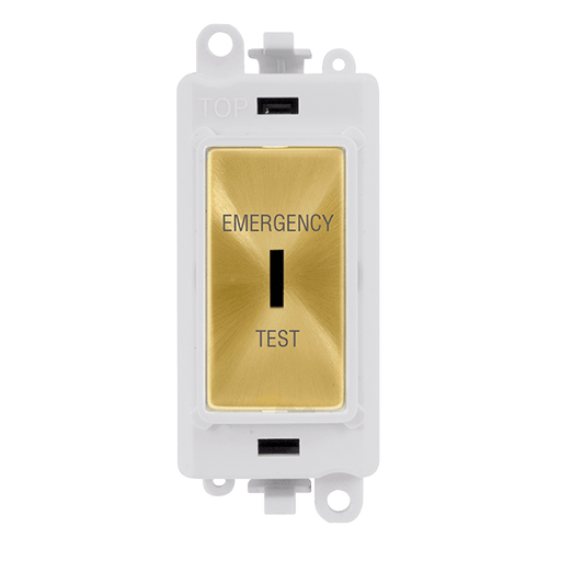 Click GridPro GM2046PWSBET 20AX Double Pole Keyswitch 'Emergency Test' Module - Satin Brass (Polar White)