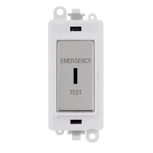 Click GridPro GM2046PWSCET 20AX Double Pole Keyswitch 'Emergency Test' Module - Satin Chrome (Polar White)