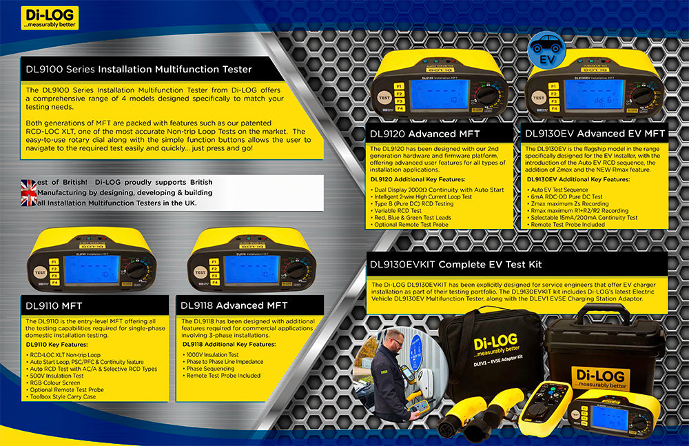 Di-LOG Test Equipment offers a comprehensive range of test equipment from a voltage indicator to 18th Edition and Thermal Imaging to portable appliance testing kits.