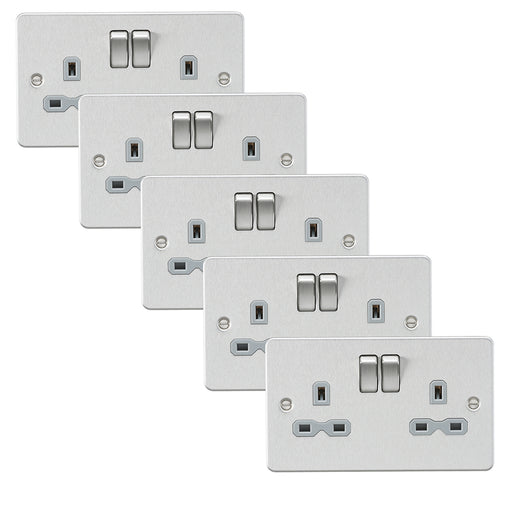 Knightsbridge FPR9000BCGx5 Flat Plate 13A 2G DP Switch Socket - Brushed Chrome + Grey Insert (5 Pack)