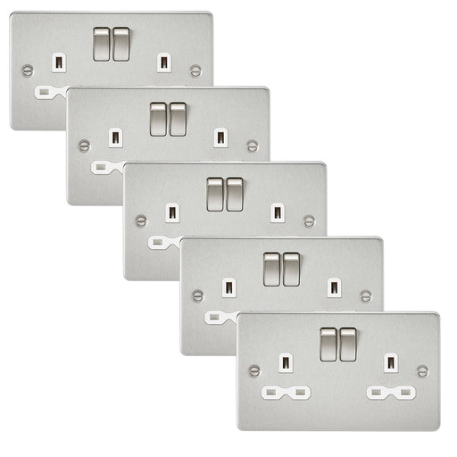 Knightsbridge FPR9000BCWx5 Flat Plate 13A 2G DP Switch Socket - Brushed Chrome + White Insert (5 Pack)