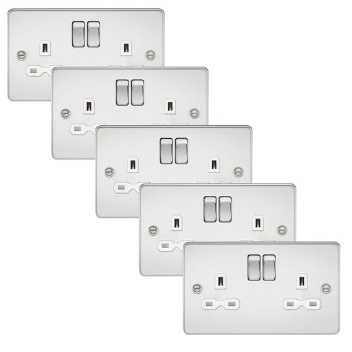 Knightsbridge FPR9000PCWx5 Flat Plate 13A 2G DP Switch Socket - Polished Chrome + White Insert (5 Pack)
