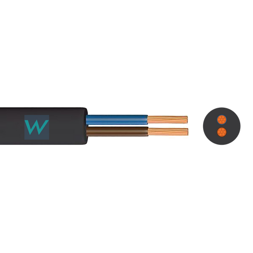 Cable3182Y 2 Core Round Flexible 1.0mm Black Cable - 50M For use in household appliances such as washing machines, spin dryers and refrigerators. Gene...