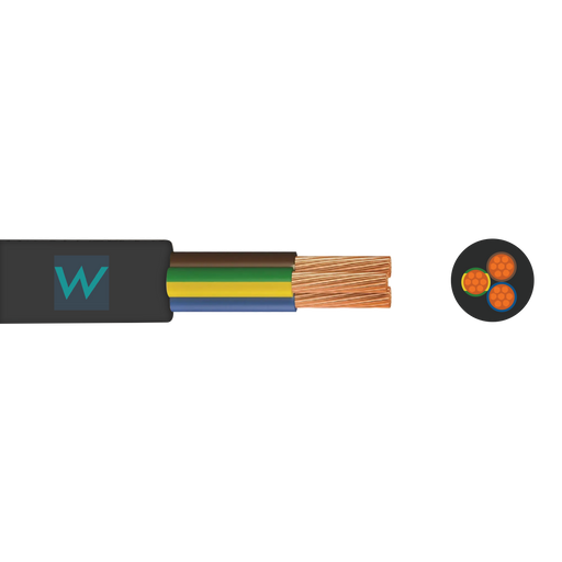 Cable3183TRS 3 Core Rubber Flexible 1.0mm Black Cable - 100M For use in household appliances such as washing machines, spin dryers and refrigerators. ...