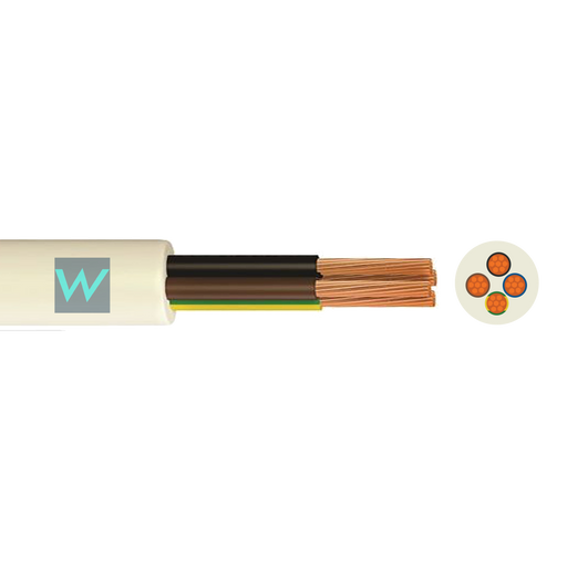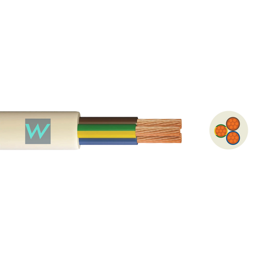 Cable6243B 3 Core & Earth LSZH 1.0mm White Cable - 100M Low smoke zero halogen domestic wiring cable for the surface wiring of sockets and lightin...