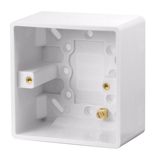 Click Mode CMA085 White Moulded 1 Gang 47mm Deep Pattress Box with Earth Terminal