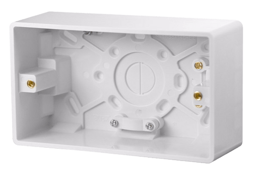 Click Mode CMA086 White Moulded 2 Gang 47mm Deep Pattress Box Fitted with Cable Restraint & Earth Terminal