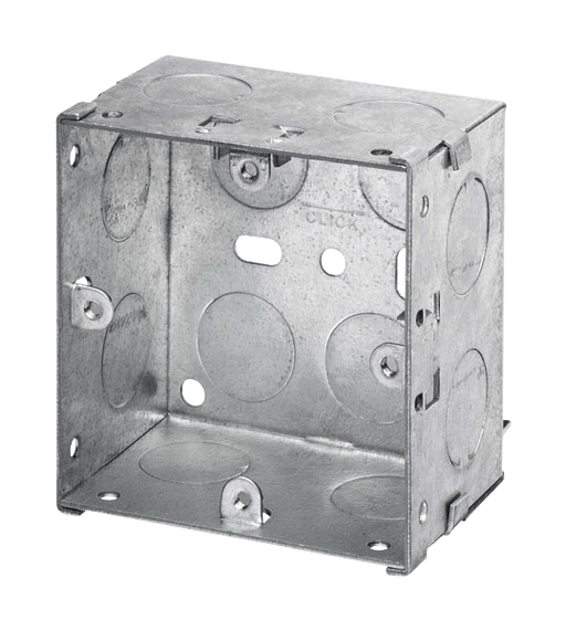 Click WA097 1 Gang 47mm Deep Galvanised Steel K.O. Box CLICK Galvanised Steel Back Boxes This item is 1 Gang 47mm Deep Galvanised Steel K.O. Box Da...