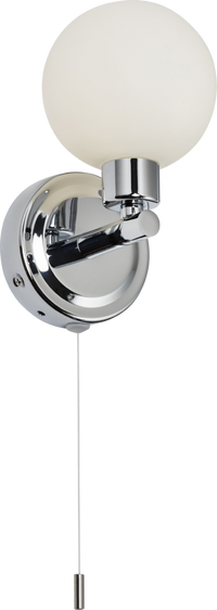 Shop the Knightsbridge BA01S1MB IP44 Single Wall Light in matt black with frosted opal glass. Perfect for modern bathrooms, this G9 light features a pull cord switch and soft diffused glow. Dimmable and stylish – ideal for contemporary interiors.