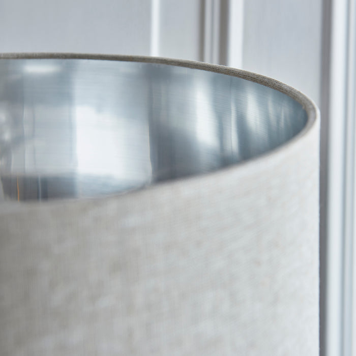 - Natural 100% linen fabric shade lined with brushed metallic inner