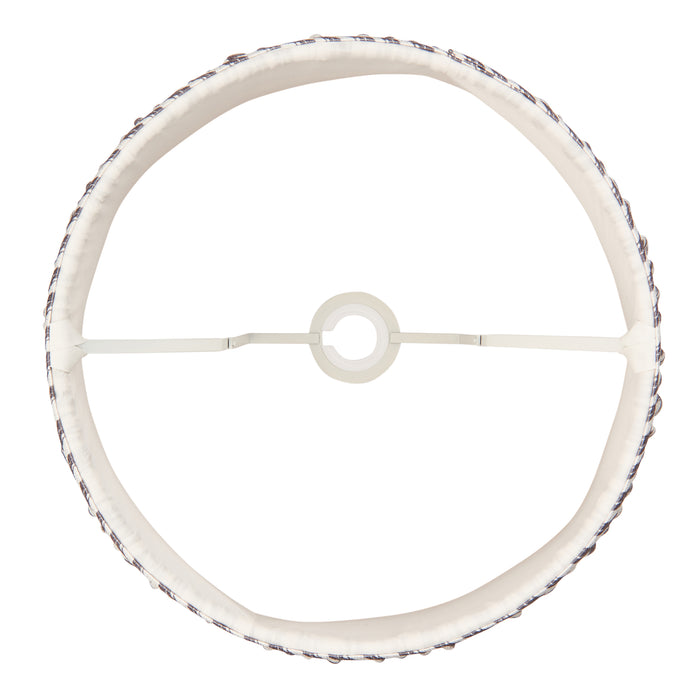 Product Description35cm tapered shade with reversible white gimbal. Ripple pattern in pearl grey colour with taped edge detailing and plain inner lining. Perfect when paired with one of our beautifully decorative table lights, floor lamps or cable sets.
