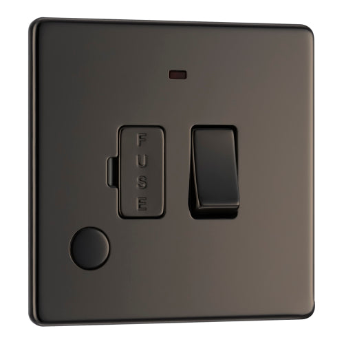 BG FBN53 Flatplate Screwless Switched Spur + Neon + Cable Outlet - Black Nickel