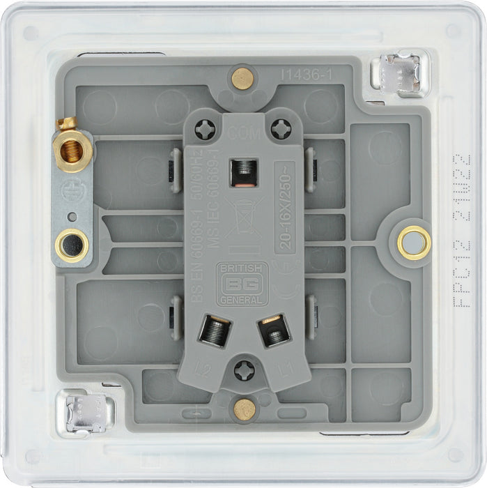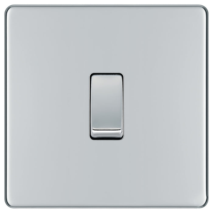 BG FPC12 Flatplate Screwless 20A 16AX 2 Way Single Light Switch - Polished Chrome