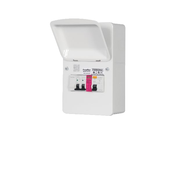 FuseBox F300GRAZ Metal Garage Unit with 63A 30mA Type A RCD, B6 B16A MCBs & T2 SPD
