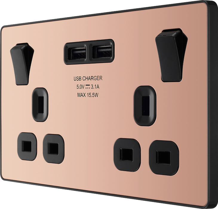 BG Evolve PCDCP22U3B 13A Double Switched Power Socket + 2xUSB(3.1A) - Polished Copper (Black)