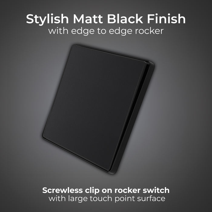 BG Evolve PCDMB12EB 20A 16AX 2 Way Single Light Switch, Edge to Edge Rocker - Matt Black (Black)