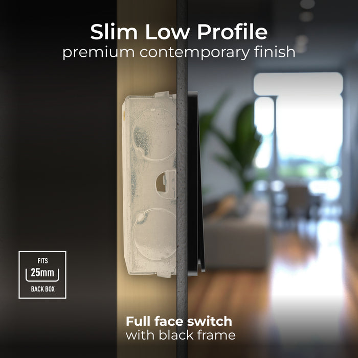 - Edge to edge switch for a larger touch point and contemporary appearance