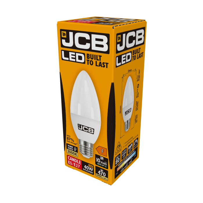 JCB S10983 E27 ES Candle LED Bulb Opal 4.9W 470lm Warm White 3000K