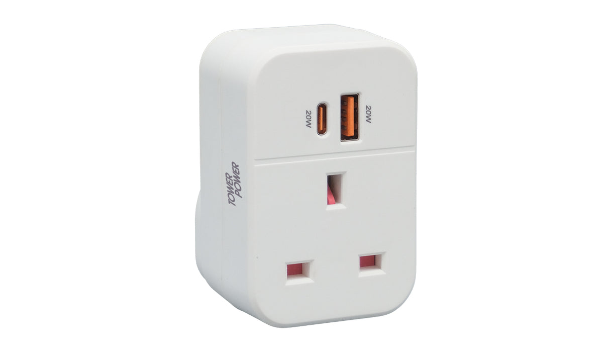 The Tower TP6121 socket adaptor combines a 13A mains socket with fast dual USB charging, making it the ideal solution for modern households and workplaces. Featuring both USB-A and USB-C ports, it delivers up to 20W of power with advanced Power Delivery (PD) and Quick Charge (QC) protocols for rapid, efficient charging. Perfect for powering smartphones, tablets, and other small devices while keeping your mains socket free for additional appliances. Designed and tested to BS 1363-3 and EN 62368-1 standards, this adaptor ensures safe and reliable performance. Backed by a 2-year guarantee for extra peace of mind.