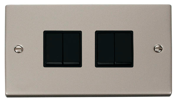 Click Deco VPPN019BK Victorian 10AX 4-Gang 2-Way Plate Switch - Pearl Nickel (Black)