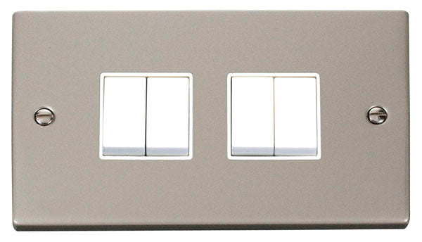 Click Deco VPPN019WH Victorian 10AX 4-Gang 2-Way Plate Switch - Pearl Nickel (White)