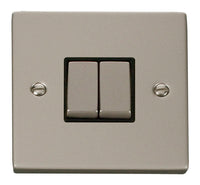 Click Deco VPPN655BK Victorian 13A Ingot 1G DP Key Lockable Switched Socket + Neon - Pearl Nickel (Black)