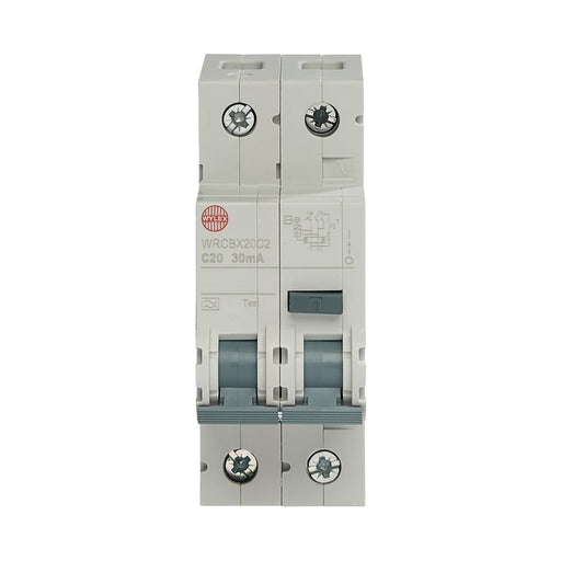 Wylex WRCBX20C2 WRCBX20C2 20A 30mA 2 Module SP+N C Curve 6kA Type A Stand Alone RCBO