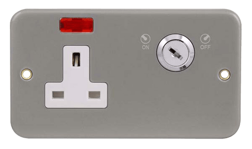 Click CL675 Metal Clad 13A 1 Gang DP Key Lockable Switched Socket with Neon
