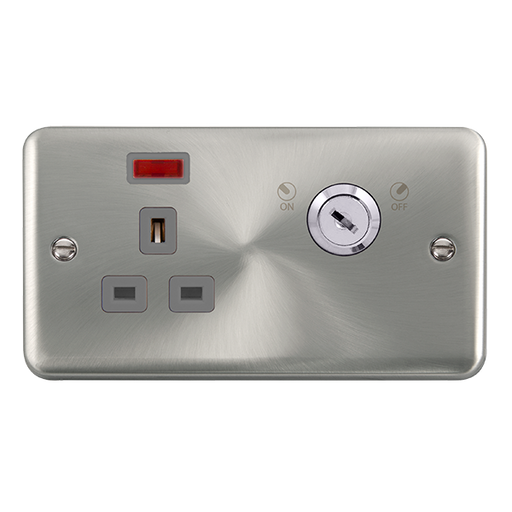Click Deco Plus DPSS655GY 13A Ingot 1G DP Key Lockable Switched Socket + Neon - Stainless Steel (Grey)