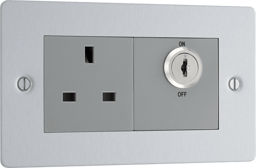 BG SBSKYSWSG Flatplate Screwed 13 DP Key Controlled Socket - Grey Insert - Brushed Steel