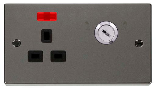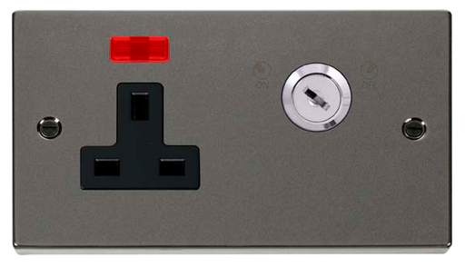 Click Deco VPPN675BK Victorian 13A 1G DP Key Lockable Switched Socket + Neon - Pearl Nickel (Black)