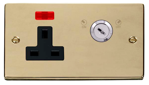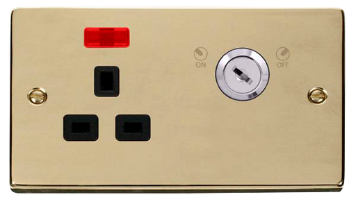Click Deco VPBR675BK Victorian 13A 1G DP Key Lockable Switched Socket + Neon - Polished Brass (Black)